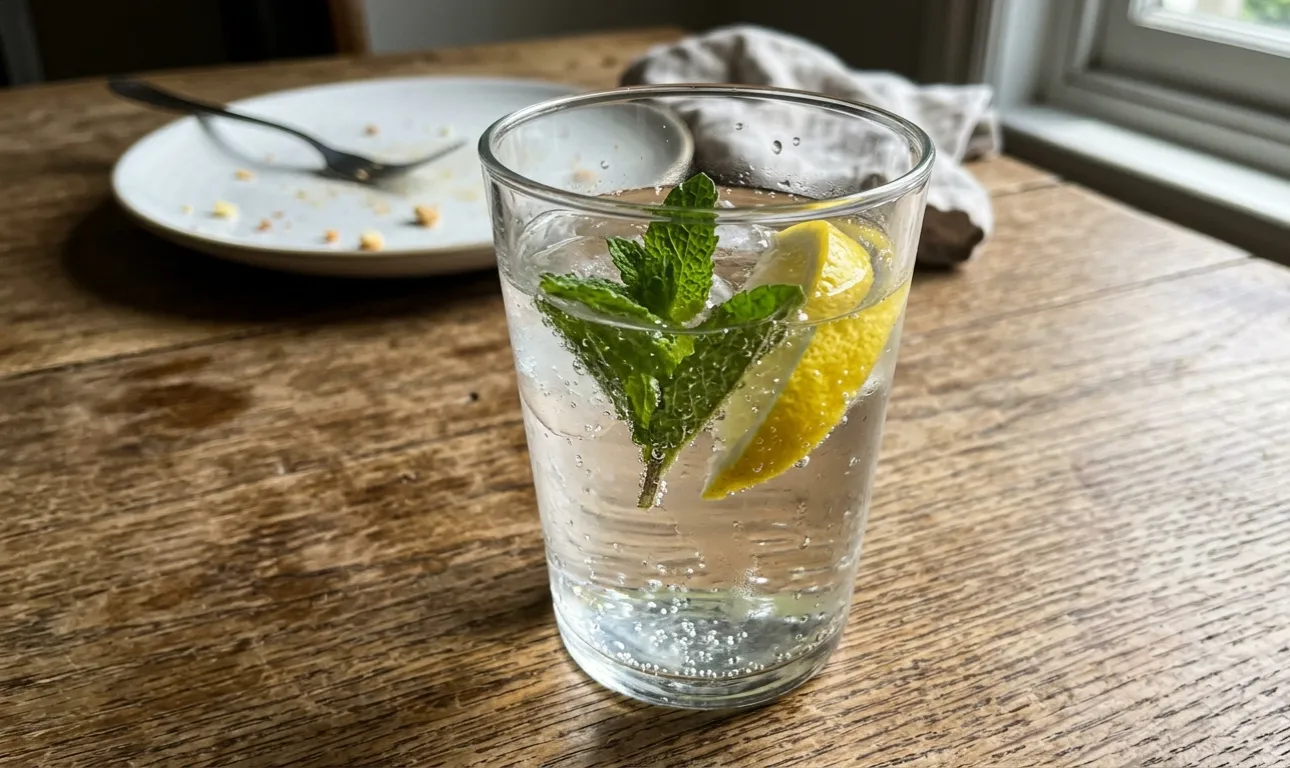Pohár teplej vody s kvapkou citrónovej šťavy je skvelý spôsob, ako zmyť zvyšky jedla a znížiť chuť na sladké.