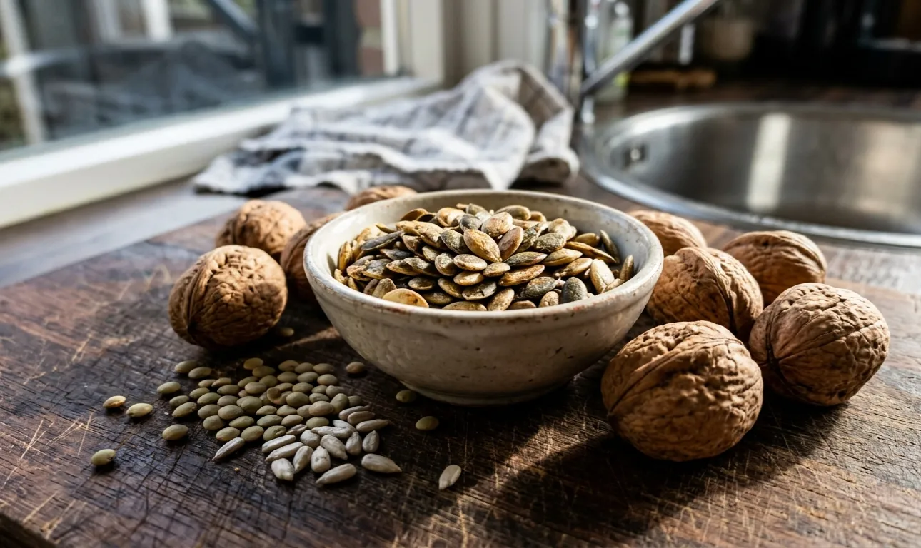 Obyčajné tekvicové semienka ako večerná desiata.