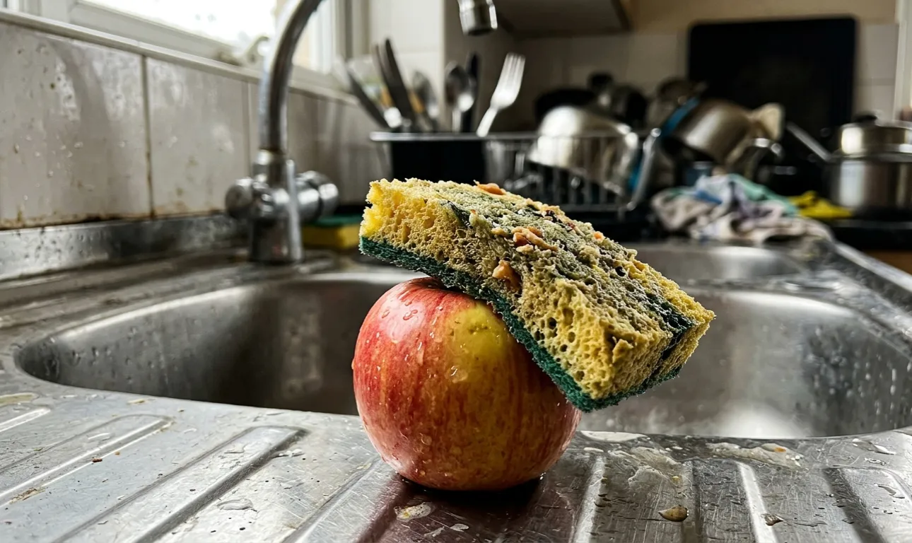 Mnohí ľudia používajú bežné náčinie z najlepších úmyslov v nádeji, že ľahko vydrhnú voskové nánosy zo šupky svojho obľúbeného jablka alebo hrušky. Avšak porézna štruktúra materiálu pôsobí ako ideálny inkubátor. V spoločnej kuchyni je huba neustále v kontakte so zvyškami mäsových omáčok, rozliatym mliekom a zaváraninami, čím zhromažďuje bohaté a pre čerstvé ovocie úplne nevhodné prostredie.